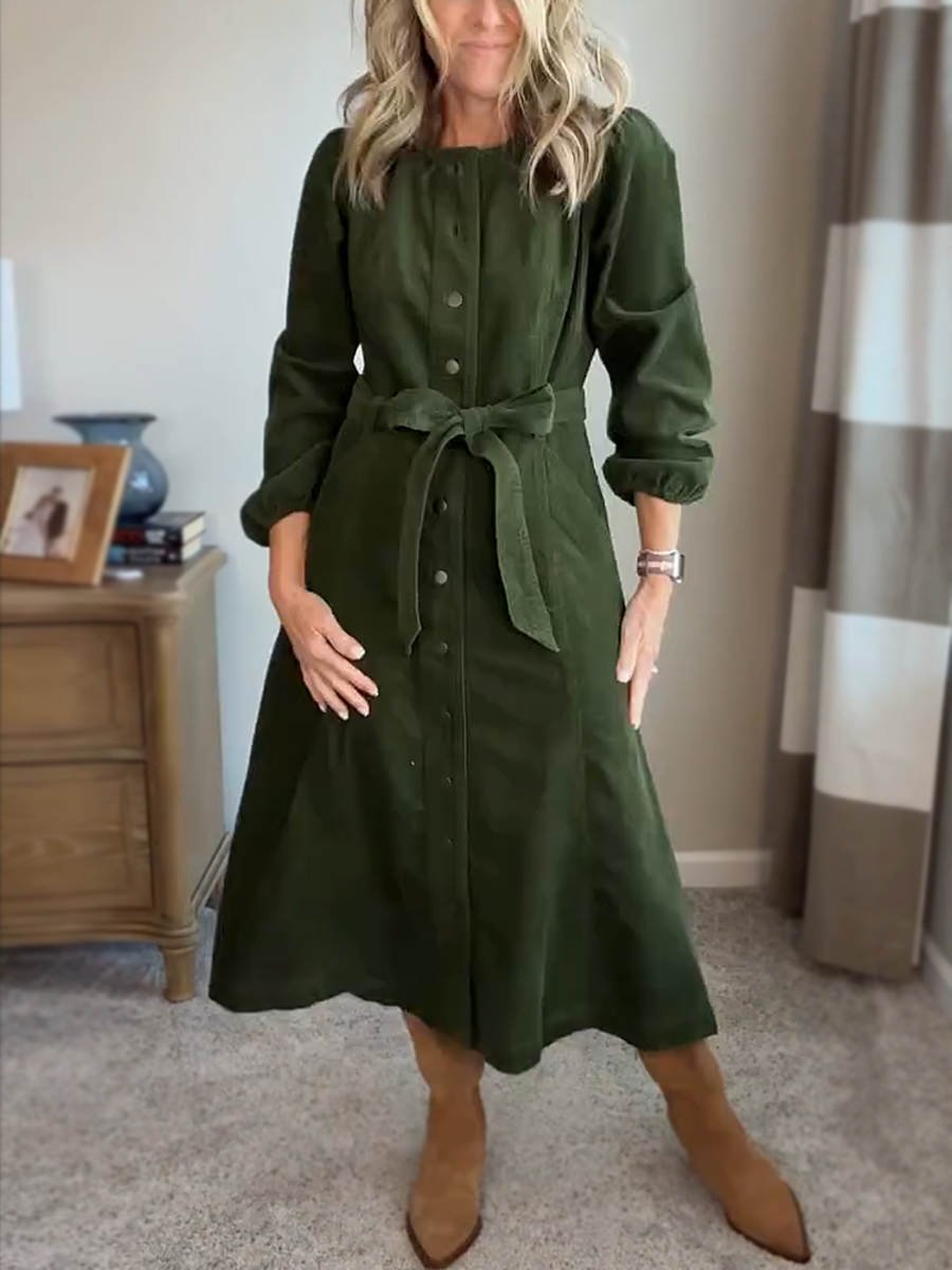 New Arrival🔥 Corduroy Shirt Dress with Tie Belt