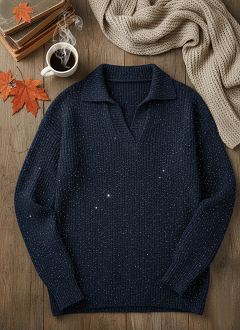 🎄 New Arrivals🔥Christmas Party Polo Collar Shiny Loose Sweater Top