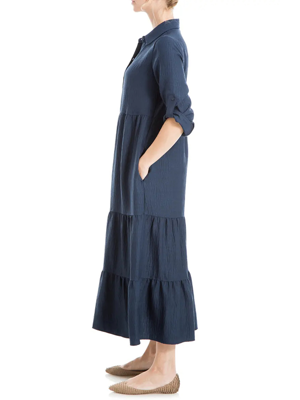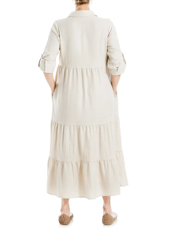 The Tiered Long Sleeve Gauze Shirtdress is designed for the modern woman who cares about sophistication and style. The elegant Maxi long dress is perfect for any occasion.