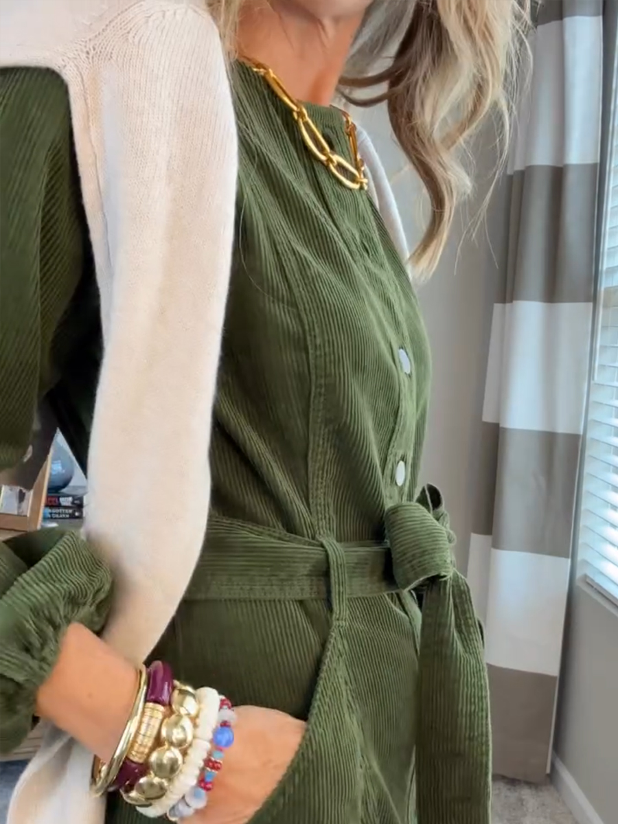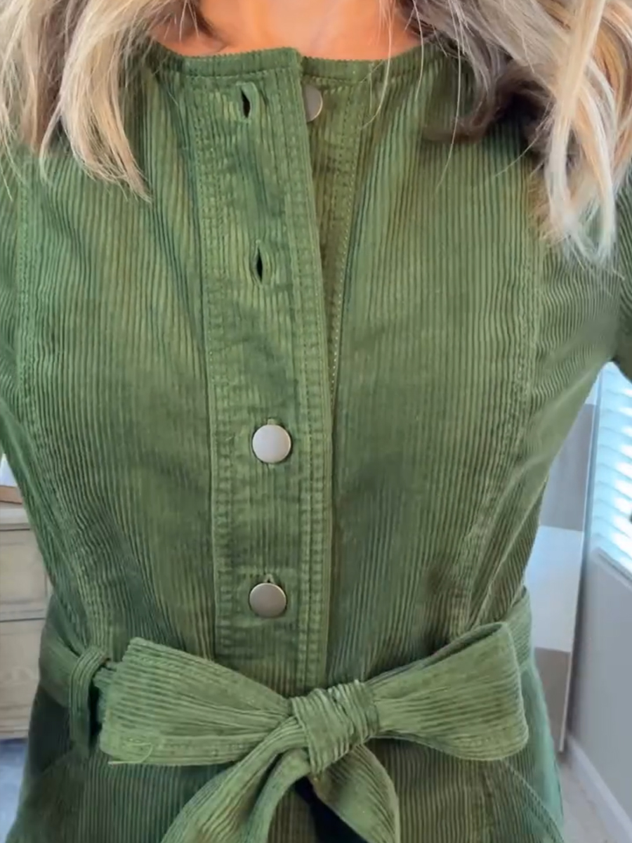 New Arrival🔥 Corduroy Shirt Dress with Tie Belt